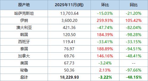 以下为根据中国海关总署官网数据整理的2025年11月精炼锌进口分项数据一览表: