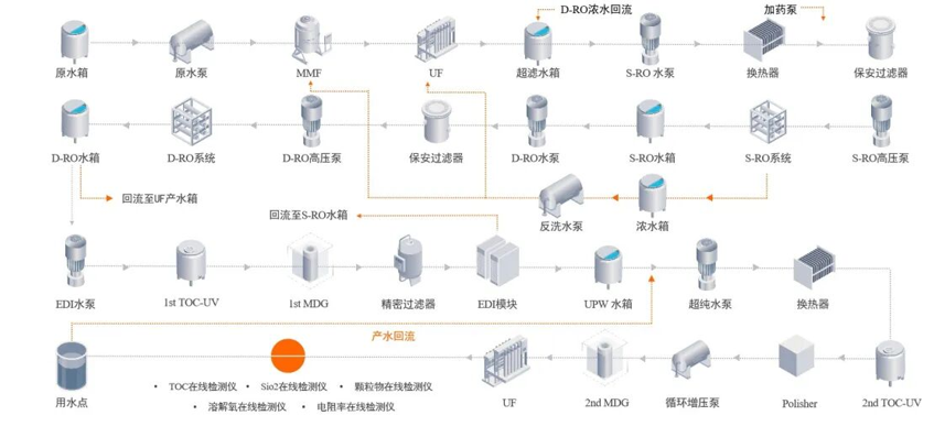 半导体超纯水工艺流程图(全膜法)