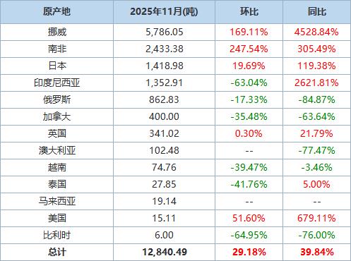 以下为根据中国海关总署官网数据整理的2025年11月未锻压镍进口分项数据一览表: