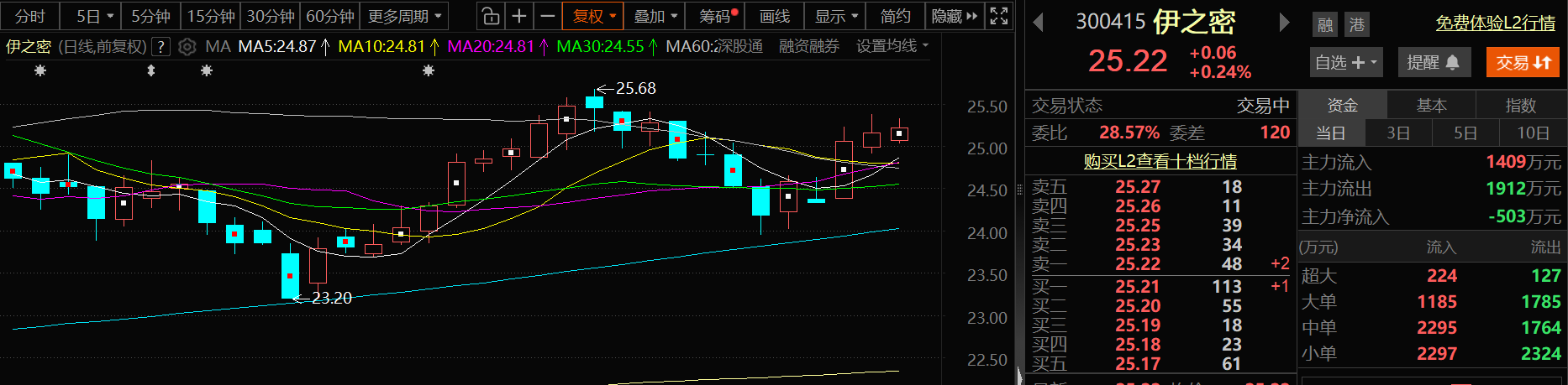 12月23日,伊之密的股价出现小幅上涨,截至12月23日10:46分,伊之密涨0.24%,报25.22元/股。
