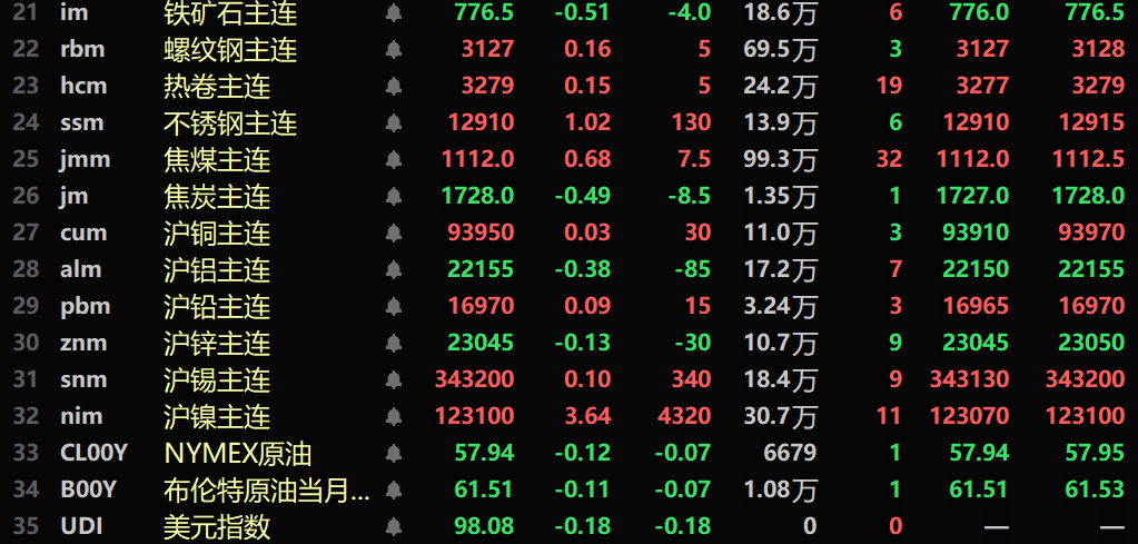 黑色系多飘红,铁矿跌0.51%,螺纹涨0.16%,热卷涨0.15%,不锈钢涨1.02%。双焦方面:焦煤主力合约涨0.68%,焦炭主力合约跌0.49%。