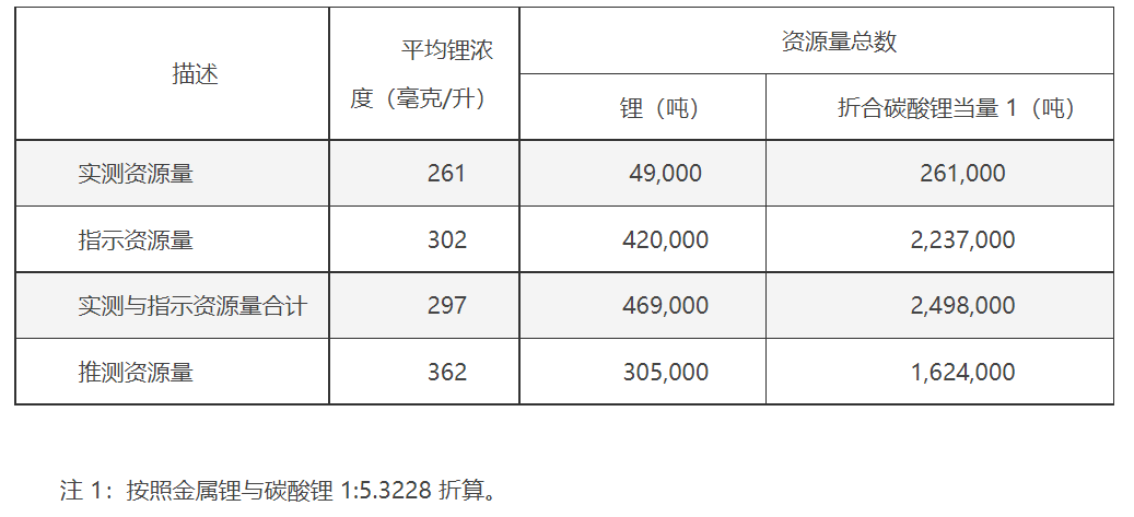 根据《NI43-101 技术报告及预可研报告》,Arizaro 项目的 LCE 总资源量概要如下: