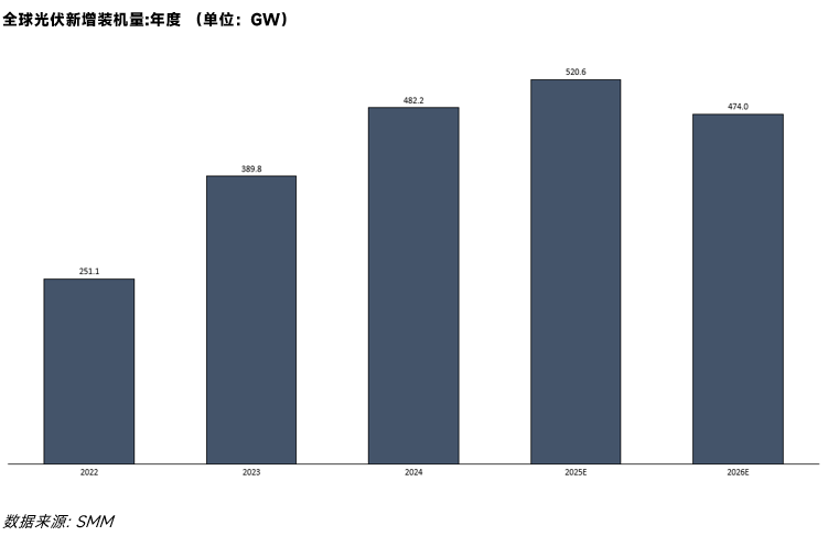 当前全球光伏产业正处于周期性调整前夕。根据SMM预测,全球新增光伏装机在2025年达到520.6GW的峰值后,预计将于2026年回落至474GW。在此宏观背景下,欧洲光伏市场的核心驱动逻辑已发生改变。市场关注点从单一的装机容量增长,转向电网运行安全性、贸易流向的结构性调整以及供应链合规性的构建。在此宏观背景下,欧洲光伏市场的核心驱动逻辑已发生改变:市场关注点从单一的装机容量增长,转向电网运行安全性、贸易流向的结构性调整以及供应链合规性的构建。