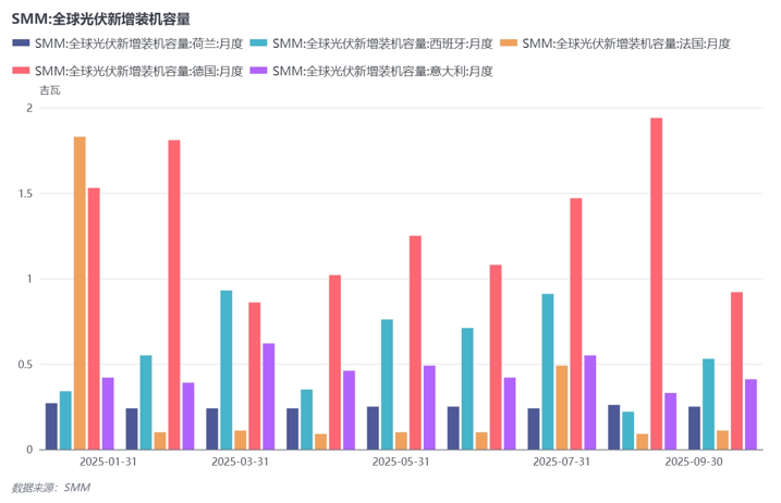 西班牙: 进口需求主要由大型公用事业级项目(Utility-scale)驱动,但受限于电网接入审批速度,其组件采购量呈现明显的周期性波动。