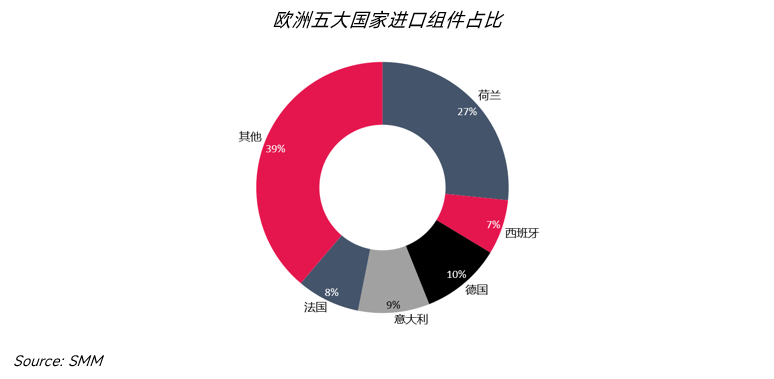 欧洲光伏产品的进口量以及光伏装机高度集中于以下五大国家,这五个国家决定了全欧的供需平衡与产品流向: