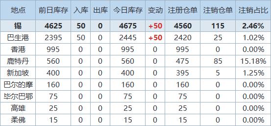 》查看更多金属库存信息