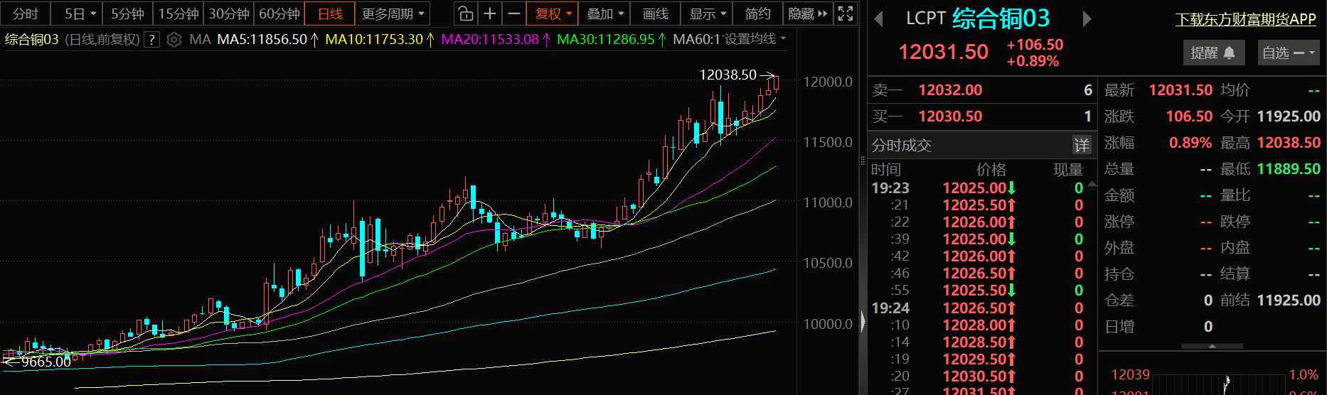 受美元走软及供应紧张相关担忧支撑,伦敦金属交易所(LME)期铜再创历史新高,三个月期铜合约升穿12,000美元/吨,稍早高见12,038.50美元/吨。