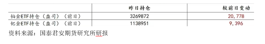 1、海外铂金钯金ETF持仓