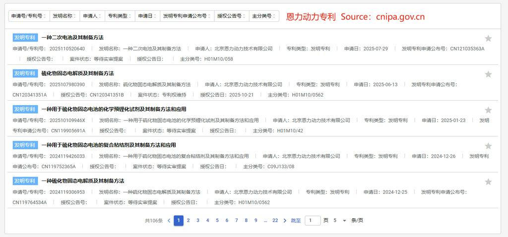 2025年11月12日,恩力动力董事长戴翔博士表示,早期与东京工业大学菅野了次实验室的合作,获得超离子导体材料及固态电池基础专利授权;从与软银集团达成联合开发出Ah级锂金属全固态软包电池。