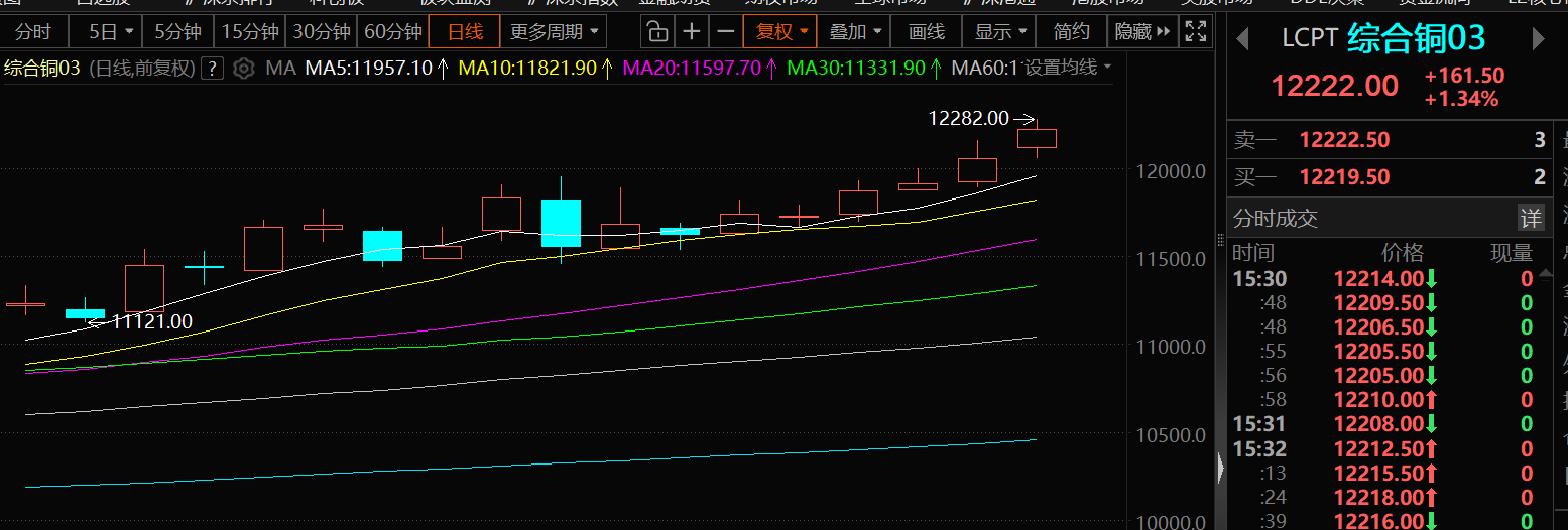 LME三个月期铜涨超1%,盘中创下12,282美元纪录高位,因数据显示美国经济强劲增长,提振了铜需求前景,同时供应紧张相关迹象也提供支撑。