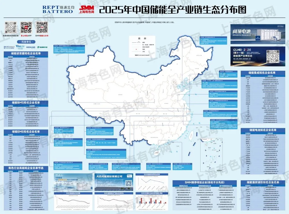 本次SMM发布的《2025中国储能全产业链生态分布图》,以可视化形式全面呈现四大核心信息: