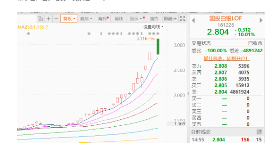 近期,国投白银LOF二级市场价格大幅上涨,连续多日涨停,场内交易价格大幅偏离基金份额净值,溢价幅度一度接近70%。