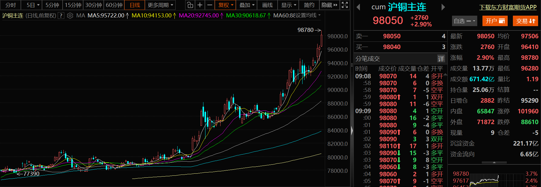 (截至12月25日9:09,沪铜的价格走势)