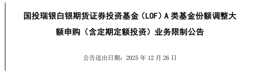 为抑制过热、警示风险,基金管理人多次采取盘中临时停牌等措施,但市场情绪一时难平。最终,基金公司在12月26日发布公告,将单日申购限额严格设定为100元。这一举措,虽属无奈,却也几乎关上了普通投资者通过公募基金便捷参与白银行情的大门。