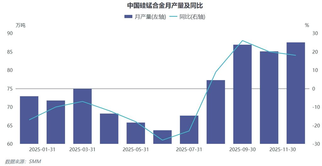 2025 年中国硅锰合金月产量呈现 “稳 - 降 - 冲” 的波动走势,核心受淡旺季需求、现货价格、宏观政策影响。