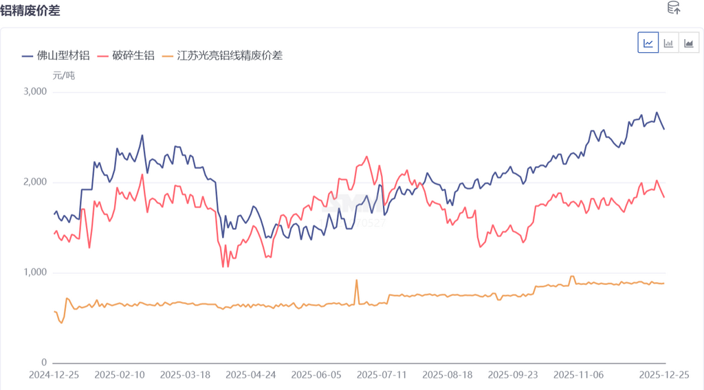预计元旦假期前后国内废铝市场价格维持高位震荡运行,同时需警惕高位回调风险。供应端,税负转嫁问题进一步影响市场供应结构。需求端,再生铝合金企业春节备库需求仍将支撑生铝系废料采购,但下游压铸企业需求放缓迹象逐步明显叠加铝价波动带来的观望情绪,整体需求支撑价格力度有所下滑。政策层面,中原及重庆地区环保限产反复的不确定性短期仍将压制局部需求。价格走势上,破碎生铝(水价)运行重心将维持在 18200-18700 元 / 吨(不含税)。短期需重点关注环保限产政策接触信号、下游企业采购节奏变化,以及税负转嫁对价格底部的影响。
