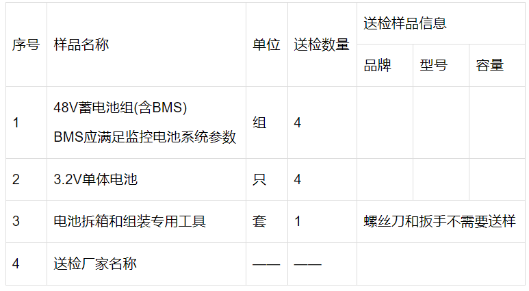 (3)送样电池组的电池单体容量应为投标产品中最大单体电池容量。