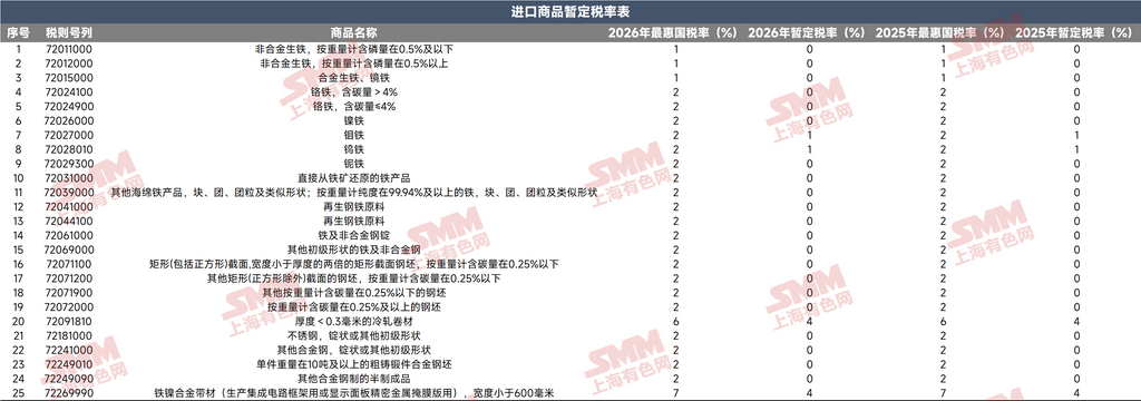 》【SMM热点】《2026年关税调整方案》发布!钢铁相关产品有无变化?