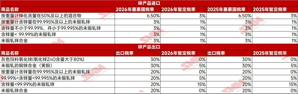 2026 年锌产品关税未实施新调整,进出口税率与 2025 年执行标准一致,未出现税率升降或规则变动,政策延续性下相关贸易成本预计将保持稳定。》点击查看详情