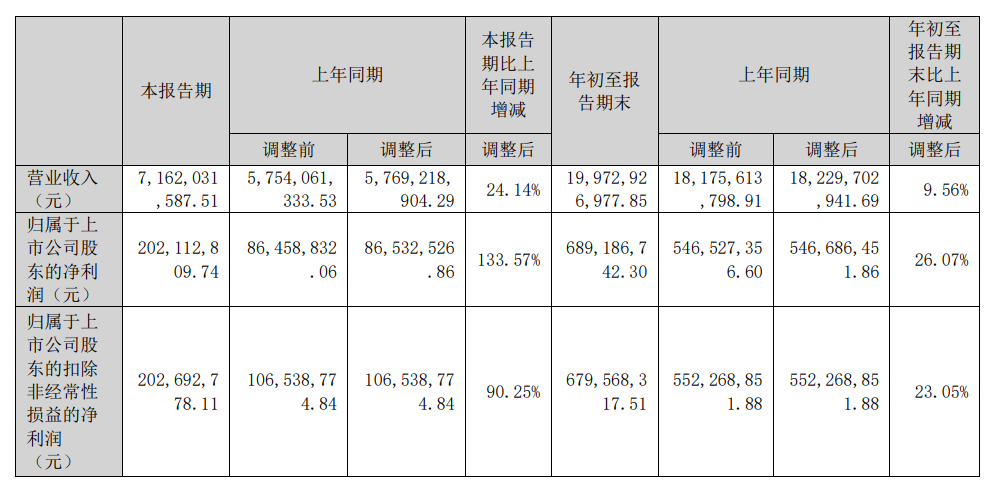 北方铜业10月24日晚发布2025年三季度报告。前三季度,公司实现营收199.73亿元,同比增长9.56%;实现归母净利润6.89亿元,同比增长26.07%。从单季度看,北方铜业第三季度业绩表现亮眼,实现营收71.62亿元,同比增长24.14%;实现归母净利润2.02亿元,同比大增133.57%。