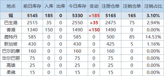 》查看更多金属库存信息