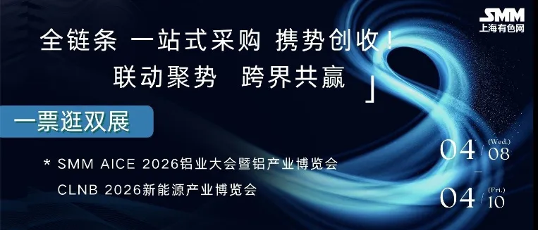 SMM AICE 2026(第二十一届)铝业大会暨铝产业博览会,将为参展商(点击报名)、采购商、专业观众(点击报名)、铝行业关注者(点击报名参观)打造一个集展览展示、论坛峰会、商贸合作、权威评选与互动体验于一体的极具影响力的会展商贸平台。