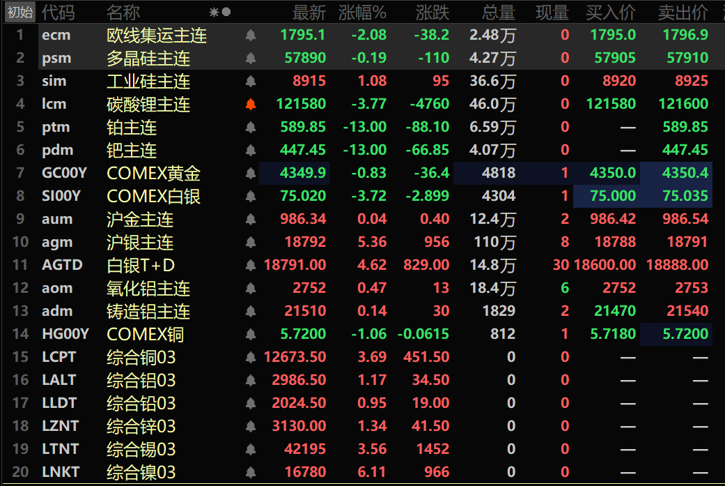 金属市场方面: