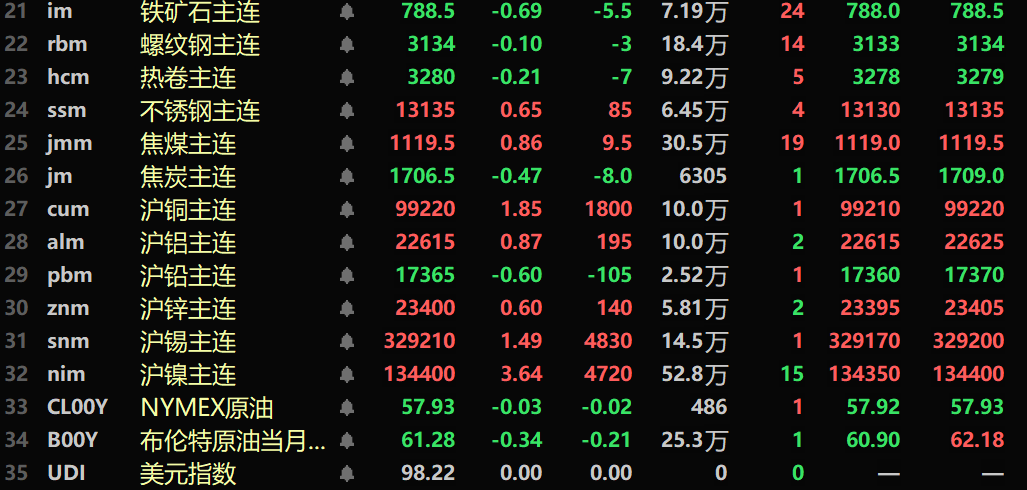 隔夜黑色系多飘绿,铁矿跌0.69%,不锈钢涨0.65%,螺纹钢跌0.1%,热卷跌0.21%。双焦方面:焦煤涨0.86%,焦炭跌0.47%。