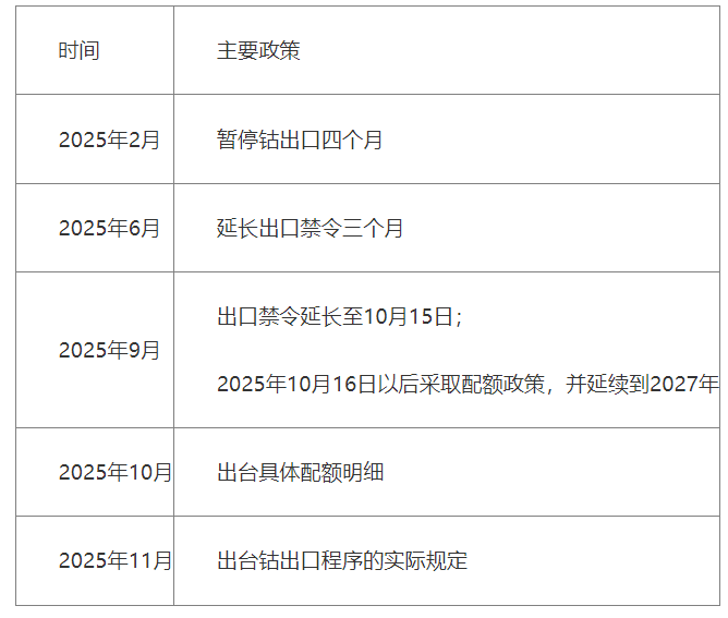 消息面上,在过去一年间,来自刚果(金)的出口禁令扰动,令年初还处于供应过剩的钴市场情绪面反应热烈,2022年2月份,刚果(金)首次提及要暂停钴出口四个月,其后,又经过了两次延长,禁令延续至2025年10月15日,16日之后采取配额政策,并延续到2027年。2025年10月,刚果(金)出台具体配额明细,11月出台钴出口程序的实际规定。