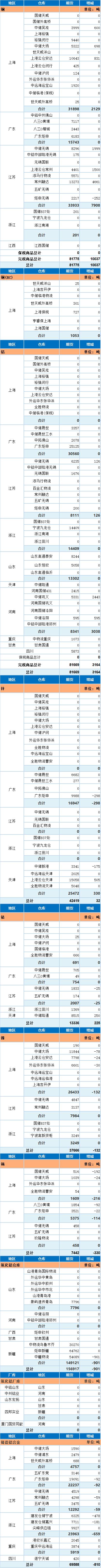 7月31日上海期货交易所金属库存日报