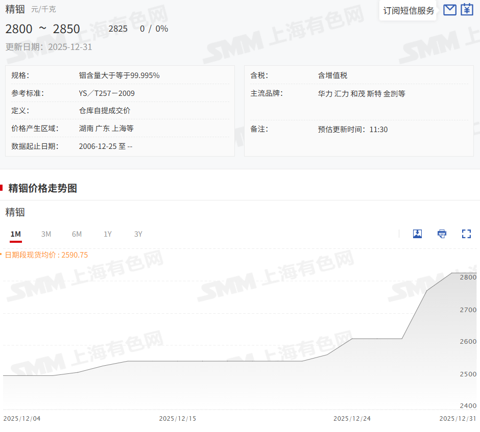 也有不少市场人士表示,价格上涨的核心驱动力也有来自对春节前备货需求的强劲预期,加上资本市场投机情绪还会反复,未来投机推动和终端采购的需求将并进,并很可能推动铟价继续上涨。市场整体坚信,一方面是供给的刚性约束,另一方面是粗铟等含铟物料的紧张和价格高昂,是导致本轮价格上涨的基础,且短期内难以缓解,作为生产企业,原生供应受限,成本高启,再生回收瓶颈也很大,这是生产企业目前不得不惜售并提价的重要原因。所以,当前市场基本面与市场情绪均支撑铟价格继续坚挺。截至本周五,市场精铟价格在2800-2850元/公斤。相较上周上涨幅度堪称疯狂。