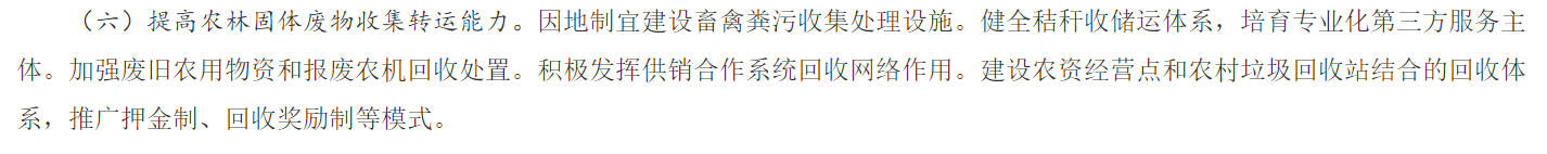 (七)加强大宗固体废弃物综合利用。提升冶炼渣、尾矿、共伴生矿、赤泥、建筑垃圾综合利用能力,加强有价组分高效提取及整体利用,因地制宜推动煤矸石多元化利用。拓宽秸秆综合利用途径,提高秸秆还田科学化、规范化水平。推进畜禽养殖废弃物资源化利用。