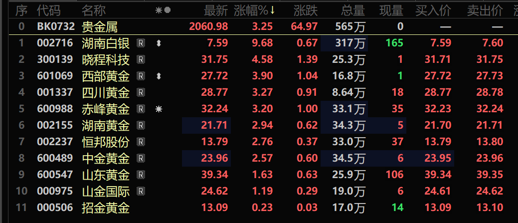 股市方面,截至1月5日11:12分左右,贵金属板块涨3.25%,个股方面:湖南白银以9.68%的涨幅领涨。晓程科技、西部黄金、四川黄金以及赤峰黄金等涨幅居前。