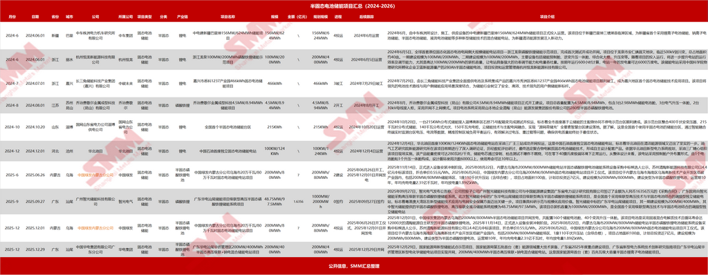 2025年底,以广东华电汕尾项目(2025年12月29日并网)和中国绿发乌海项目(2025年12月1日并网)为代表的大型项目集中投运,2025年8月11日南都电源签署总容量高达2.8GWh的314Ah半固态电池独立储能项目订单,标志着半固态电池储能赛道可能即将出现根本性转折。SMM收集到多个半固态电池储能项目信息,从以下几个维度进行解读半固态储能市场情况。