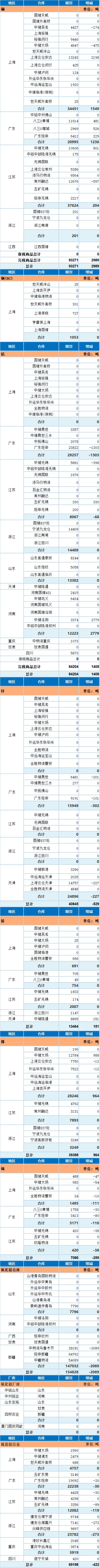 10月24日上海期货交易所金属库存日报