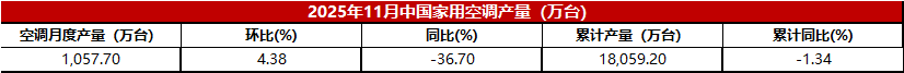 2025年11月中国家用空调产量
