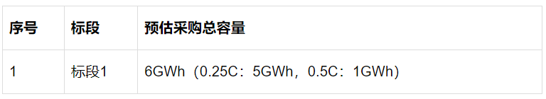 据悉,本次招标总容量共计约6GWh,分设一个标段,其中0.25C规格5GWh、0.5C规格1GWh,采购覆盖西北、华北、华南、华中、东北五大区域。具体来看,西北区域0.25C规格采购量2GWh,华北区域包含0.5C,0.5GWh与0.25C,1GWh,华南区域与华北区域规格及采购量一致,华中与东北区域则各规划0.25C规格0.5GWh。