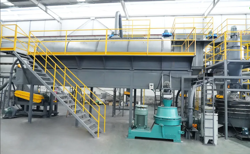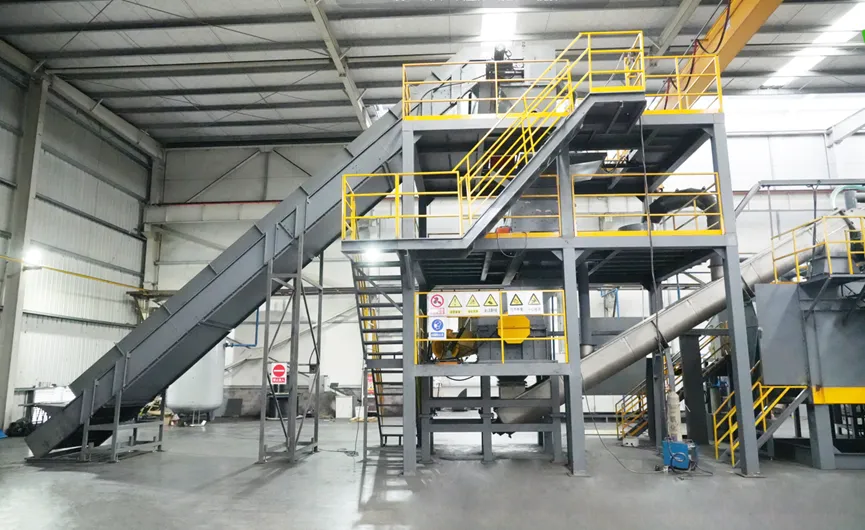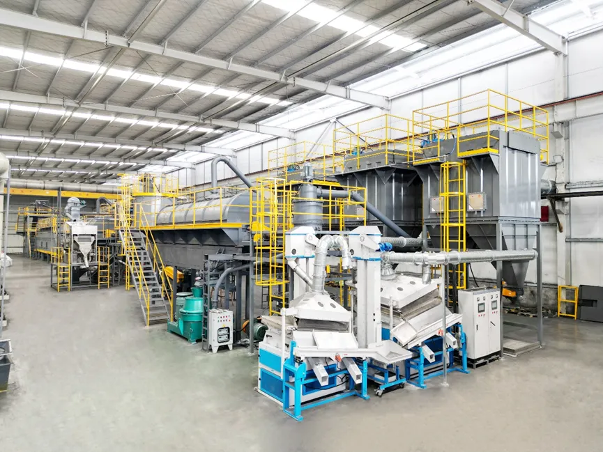 破碎分选:裂解后的物料通过破碎机、空分机、磁选机、色选机、研磨机、分级机、铜铝分选机等设备分选出外壳、正负极粉、铜颗粒、铝颗粒等物料所有物料均能达到可销售状态,没有混合物料.