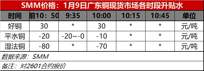 1月9日广东铜现货市场各时段升贴水(第二时段10:00)【SMM价格】