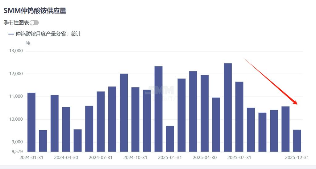 ②APT市场开工低位,行业补库需求激增。12月份国内仲钨酸铵企业检修较为集中,市场产量下降明显,SMM数据显示12月份国内APT产量环比下降9.7%至9600吨附近,而下游粉末企业持续低库存的情况下,月初进入新一轮的补库周期,APT供需错配,市场需求拉动及成本支撑强劲,成交进入一单一议,价高者得的状态。