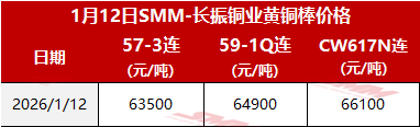 【SMM价格】2026年1月12日长振黄铜棒价格