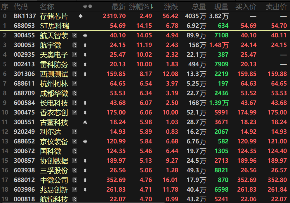 个股方面,天奥电子、雷科防务涨停,成都华微,长电科技、香农芯创等多股纷纷跟涨。