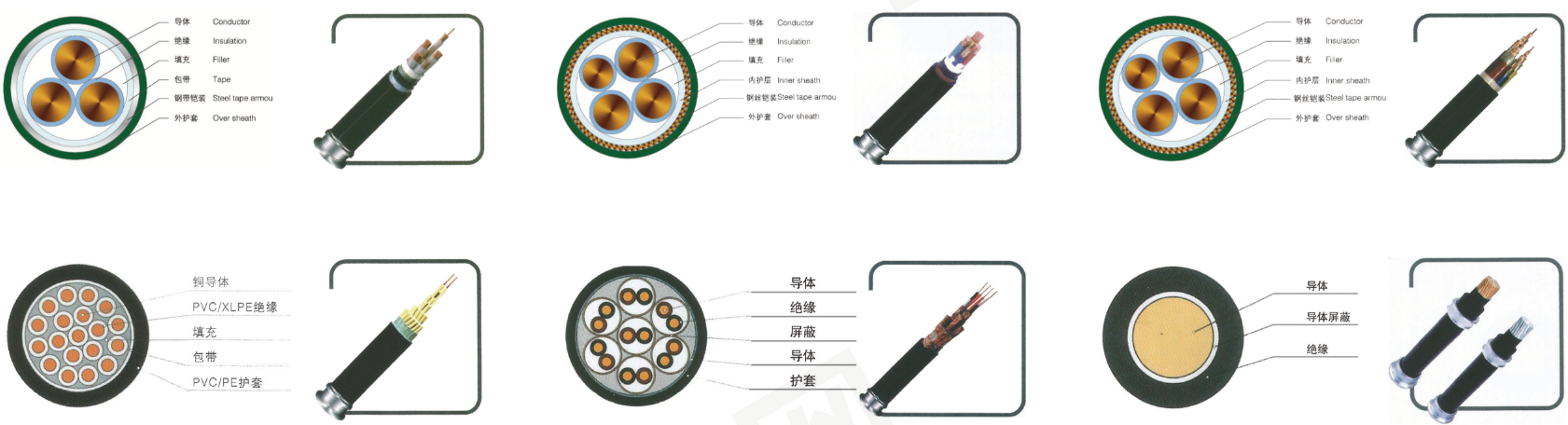 低压交联电缆,硅橡胶和氟塑料绝缘特种电缆电缆,控制电缆,拖链电缆,绝缘架空电缆,计算机电缆,铜、铝绞线以及其它各种阻燃、低烟低卤、低烟无卤、耐火、隔氧层环保型等特种电缆。