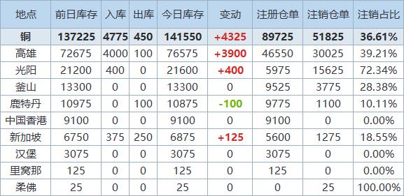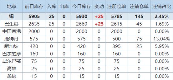 》查看更多金属库存信息