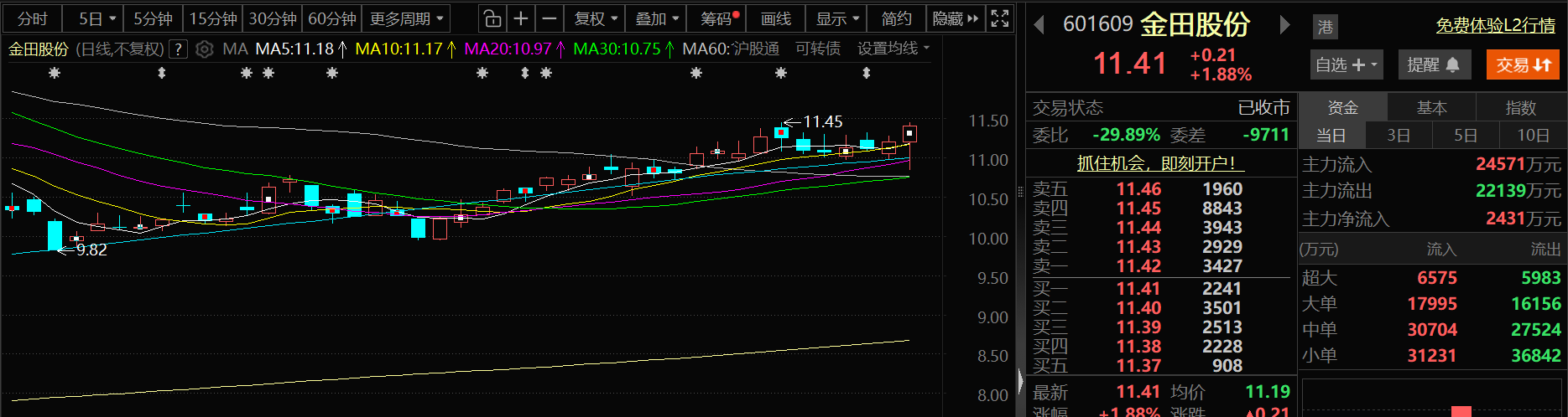 1月20日,金田股份股价出现上涨,截至20日收盘,金田股份涨1.88%,报11.41元/股。