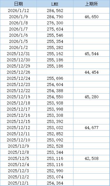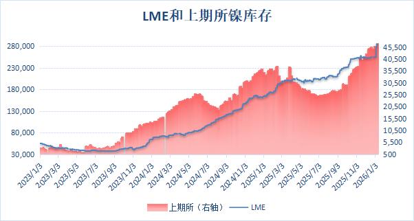 以下为2025年12月以来LME和上期所镍库存数据:(单位:吨)