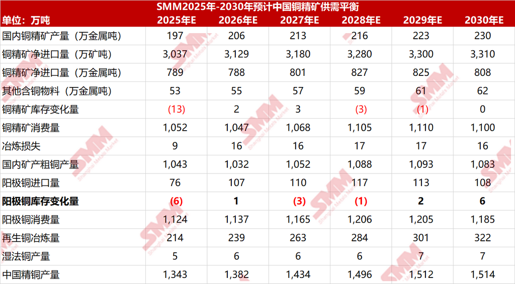 随着铜精矿进口数据、阳极铜进口数据、中国电解铜产量等数据越来越清晰,不难得出2025年的铜精矿供需平衡表,并从表中我们得到以下启示: