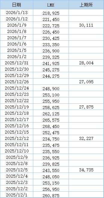 上海期货交易所公布数据显示,1月9日当周,沪铅库存继续回升,周度库存增加7.52%至30,111吨,位于逾一年相对低位。