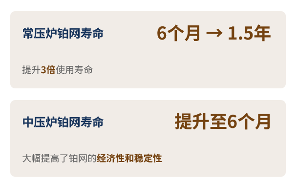 3.铂网的转化率提高:优化的结构设计提升了氨氧化转化率,达到更高的硝酸产量。