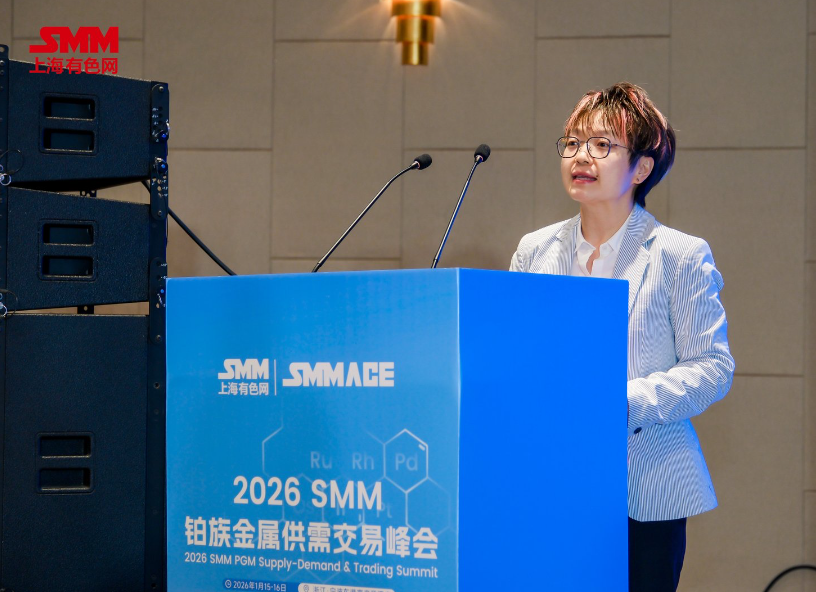 1月16日,在由上海有色网信息科技股份有限公司(SMM)主办的2026 SMM铂族金属供需交易峰会上,上海派特贵金属环保科技有限公司催化网业务负责人曾洁围绕“氨氧化制硝酸⽤铂⽹技术迭代与资源循环”这一主题进行了论述。